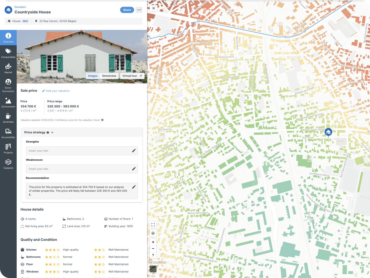 - Renovierungsrechner: PriceHubble verfügt über eine spezialisierte Lösung, die Auswirkungen von Sanierungsmaßnahmen auf den Immobilienwert berechnet. Makler können so energetische Sanierungsempfehlungen geben und deren Wertsteigerung prognostizieren – ein Vorreiter-Feature im Hinblick auf ESG-Kriterien.