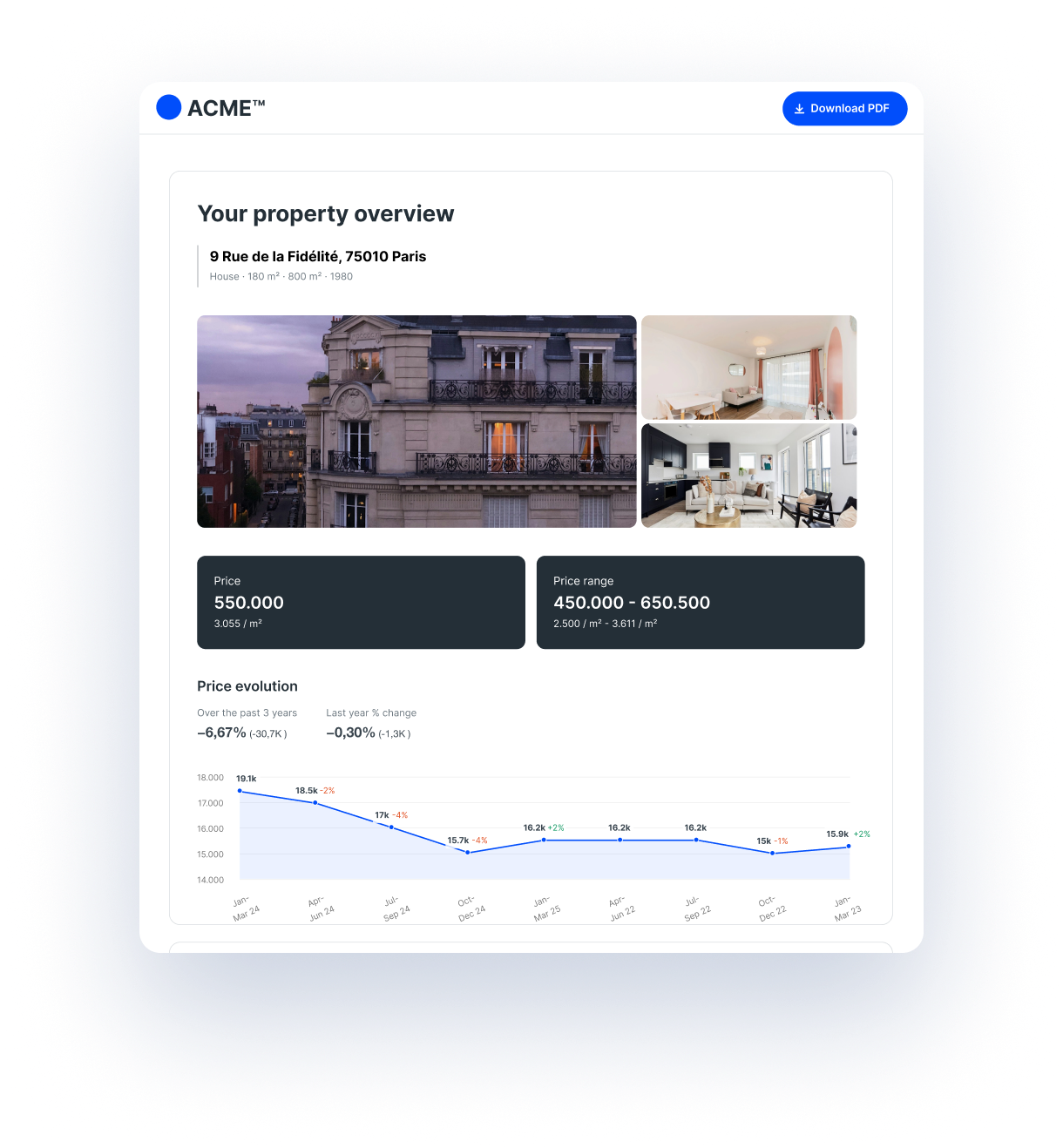 Durch die Einbindung von PriceHubble-Berichten und -Analysen in Mailings können Makler:innen ihren Kontakten hochrelevante Informationen liefern, sich als Expert:innen positionieren und nachhaltig Vertrauen aufbauen. Auf diese Weise wird Marketing nicht nur effizienter, sondern auch datengetrieben und individuell.